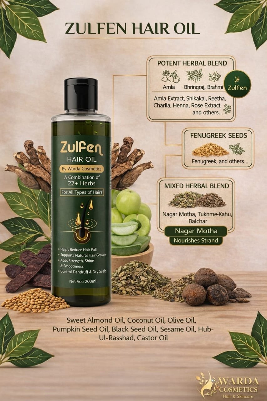 Zulfen Hair Oil is specially made with pure mustard oil and powerful natural herbs to nourish your roots and support healthy hair growth.